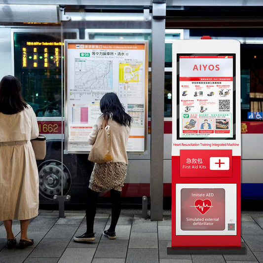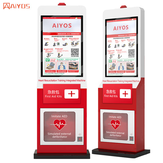 43 Inch Digitl Signage Advertising Kiosk Flooring Standing AED Smart First Aid Station Emergency Kit Storage Cabinet With Alarm Lamp for Emergency Medical Supplies