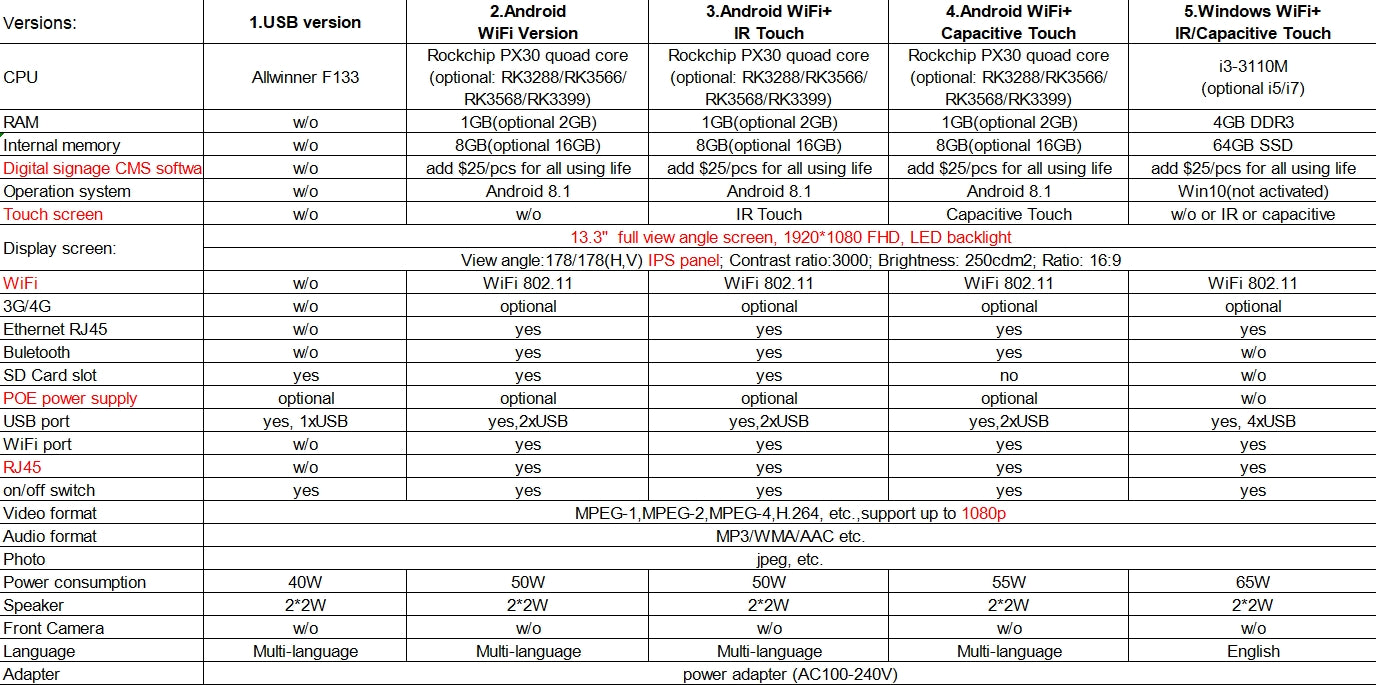 14 Inch FHD Panel Capacitive Multi-Touch Android Online Video Commercial LCD Digital Signage