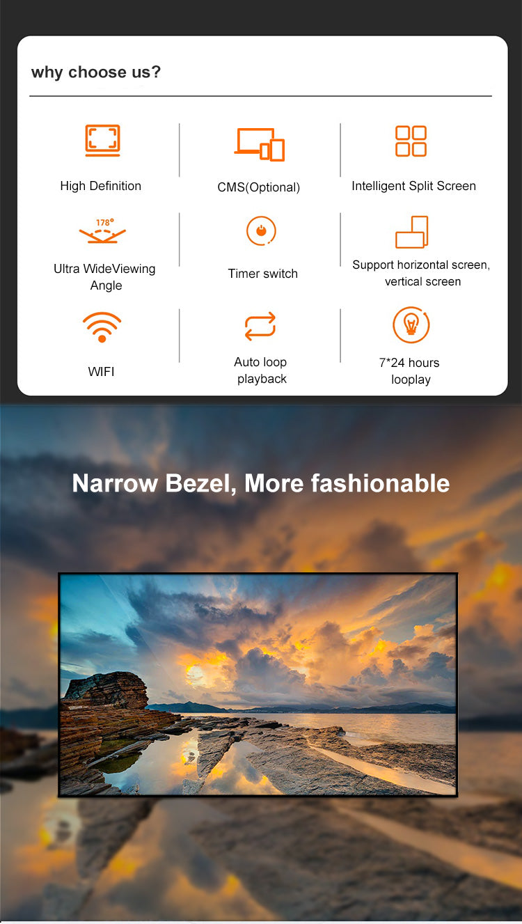 65 Inch Ultra Thin Touch Screen Wall Mount Digital Signage Smart Advertising Display LCD Advertising Screen