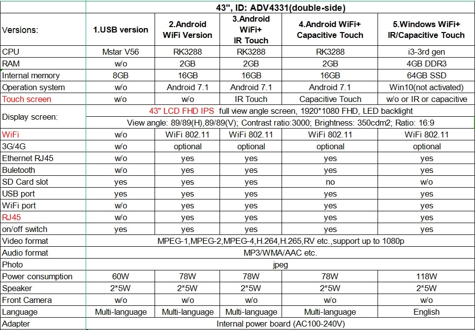 43 inch indoor double sided floor stand double face LCD advertising signages totem design kiosk