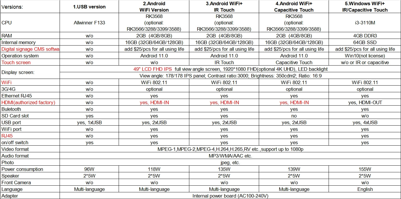 50 Inch Android LCD Interactive Touch Screen Monitor Kiosk Wall Mounted Advertising Display