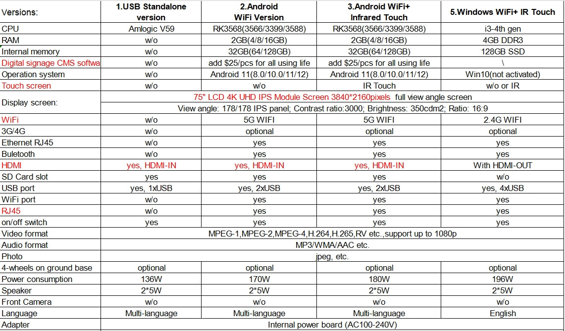 75 Inch Free Standing indoor Android Wifi Vertical Touch Screen LCD Digital Signage Advertising Display Monitor