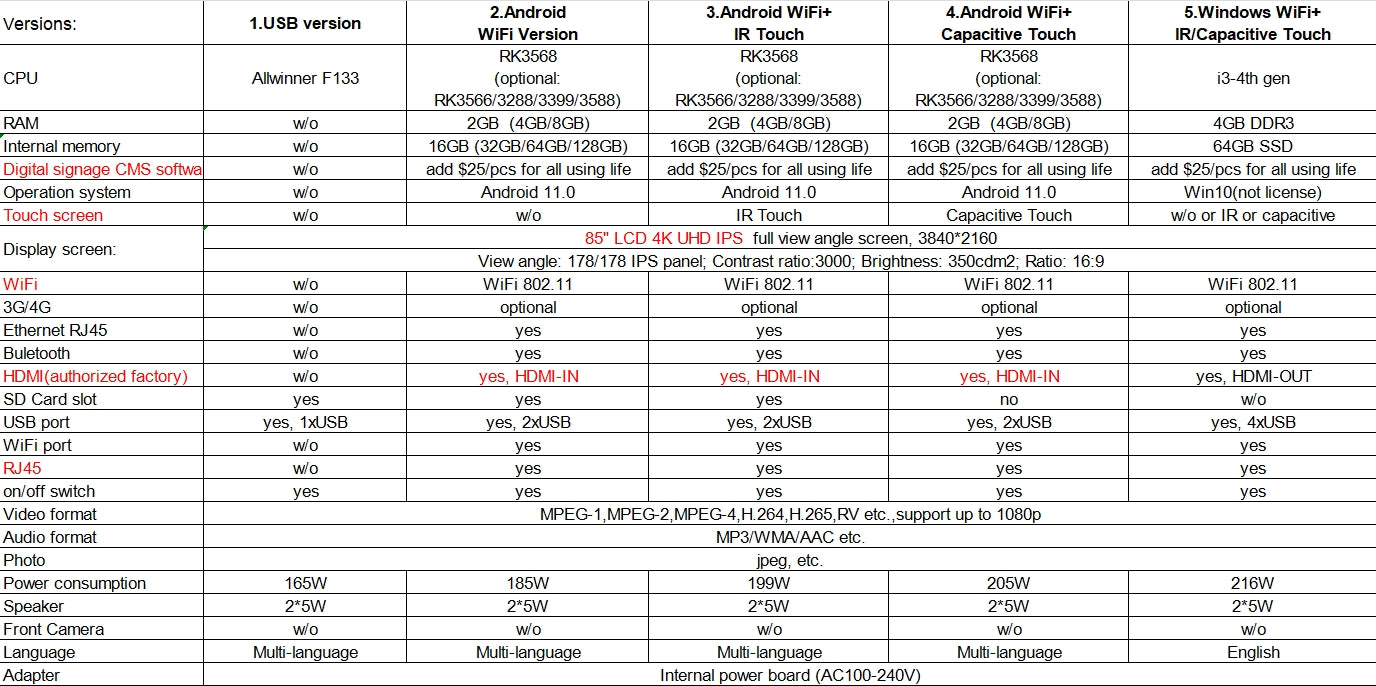 85 inch Wall Mounted LCD Advertising Display Touch Screen Hanging Display LCD Screens Digital Signage