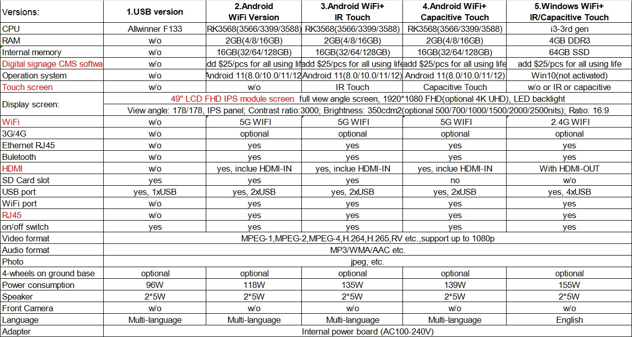 49 Inch Floor Stand Digital Signage And Displays Android WIFI IPS Touch Screen Kiosk Indoor FHD LCD Smart Advertising Display Players