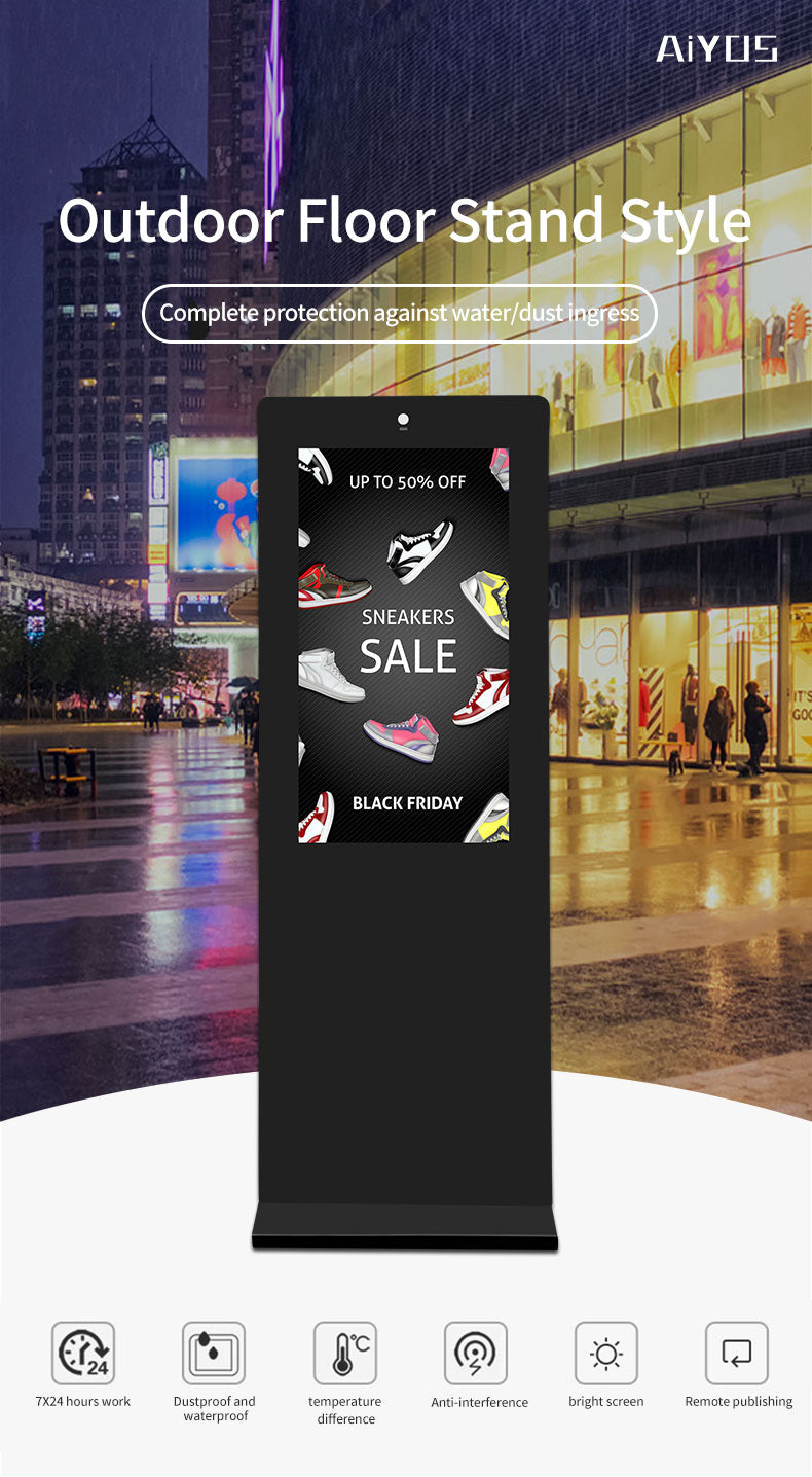 Commercial digital advertising 2500 nits High Brightness outdoor digital signage display totem ip65 Android system Nano touch screen