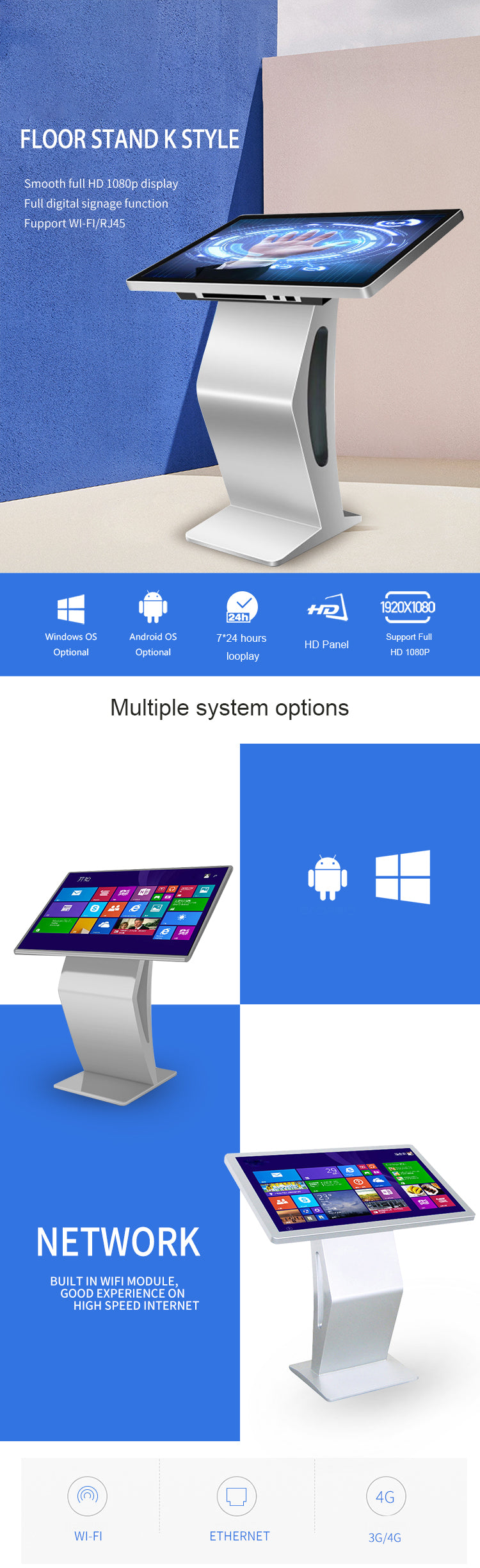 55 Inch K shape interactive table panel touch screen monitor floor stand digital signage advertisement equipment